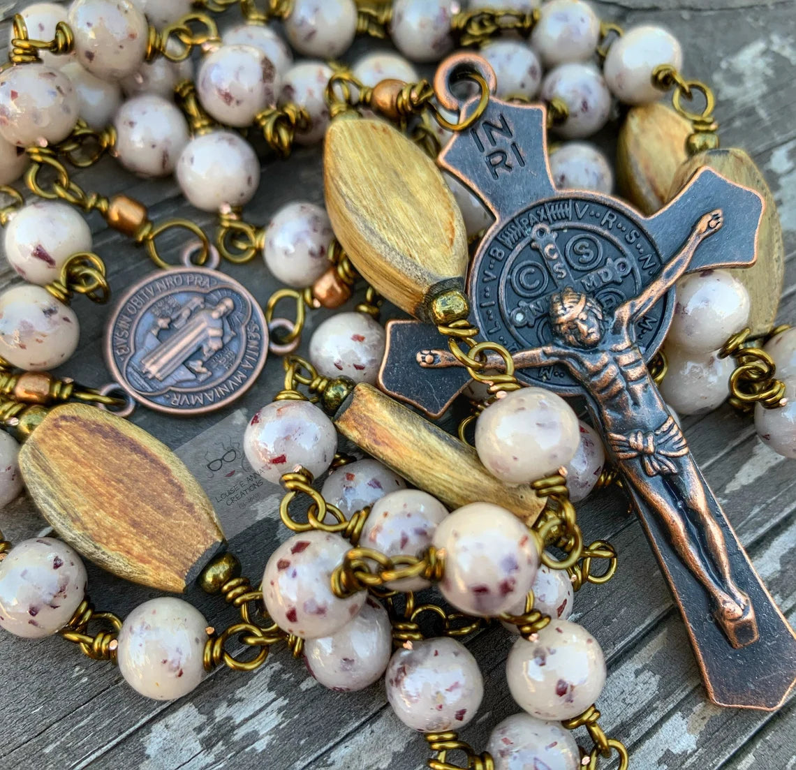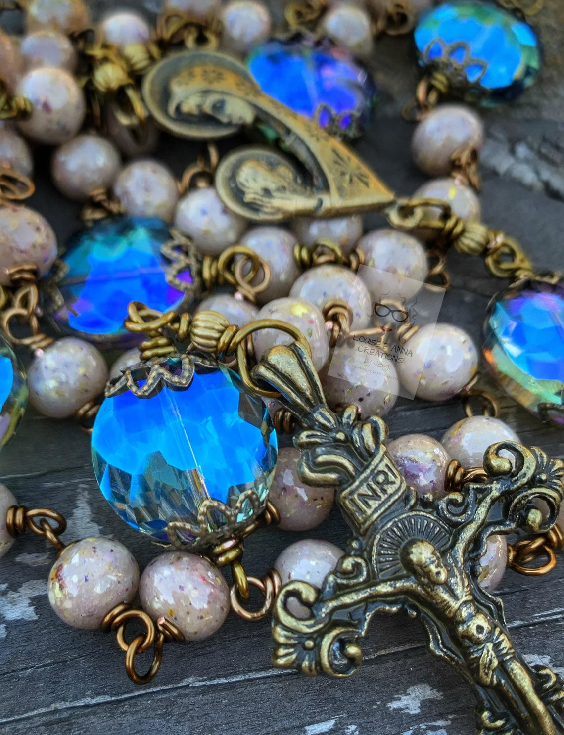 Because each rosary is fully customized, centers, crucifixes, and Our Father beads may vary slightly from photos. I always strive to find the most beautiful, comparable options for your piece.